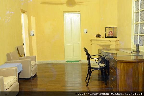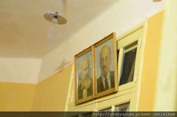 胡志明書房,掛著馬克思(左)與列寧(右)的相片