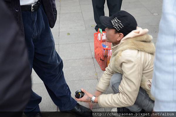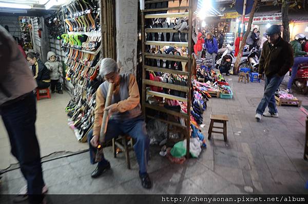 - 別讓小弟差皮鞋:本來一萬越盾(15台幣),他會在抹布藏小刀割花你的鞋子,然後說不好擦索取高價30美元。下圖在36古街就有團員遇到,所幸當地導遊有事前教育沒有讓他擦。
