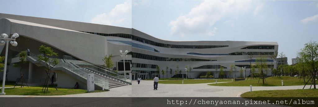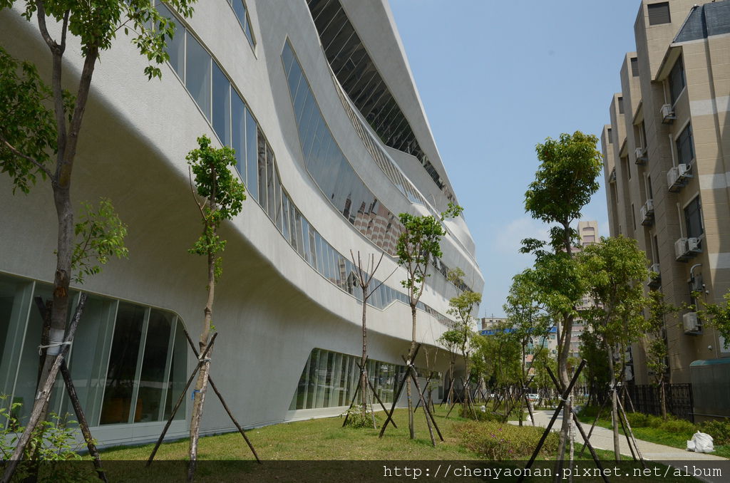 這個設計唯一的大缺點就是:周邊沒有樹陰,而且設計的樹種也是沒有樹陰的小喬木。所以,該不會設計者在思考建築物機能時想說:來到圖書館別在外面逗留,趕快去念書!!別想在外頭約會!!