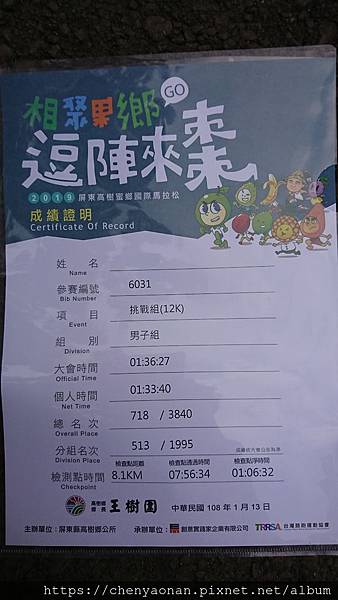 今年的一月初次參加馬拉松賽事,雖然只有12KM,但還是有點小小的擔心怕會跑不完。賽前練習最多以跑過12KM,總之,出發往屏東大樹鄉走。