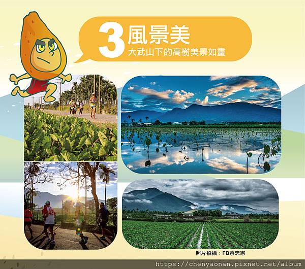 - 一、活動目的:為推動高樹鄉在地農特產品行銷,並推廣全民體育交流,提倡多運動的健康生活,藉此次馬拉松,促進高樹鄉觀光發展和活化農特產品銷售商機,結合運動與休閒,吸引更多觀光人潮,不僅帶動農特產品推銷與在地風土民情,更期望藉由路跑活動,展現高樹鄉的熱情活力讓愛好馬拉松運動的跑者們感受屏東高樹之美,提昇高樹鄉農業競爭力,並拓展休閒農業,達到永續經營與發展之目的。