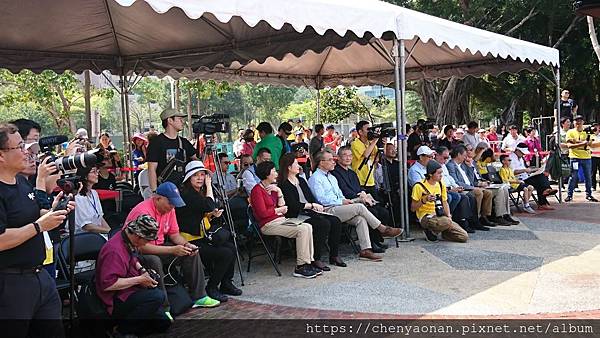 舞台前貴賓高市文化局代理局長王文翠(左六)、高雄市副市長葉匡時(左七)、何創時基金會董事長何國慶(左八)、張大春(右六)。