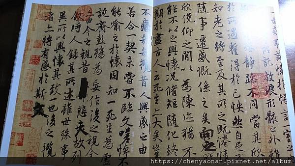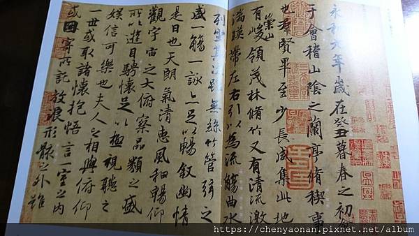 活動的手冊很用心,裡面有馮承素(神龍本)擬摹王羲之「蘭亭序」1:1的全文,對於想練習蘭亭集序的人,真的如獲至寶。裡面也有縮小版明代繪製「蘭亭集序休憩圖」。
