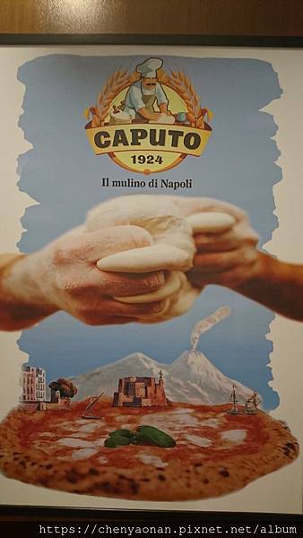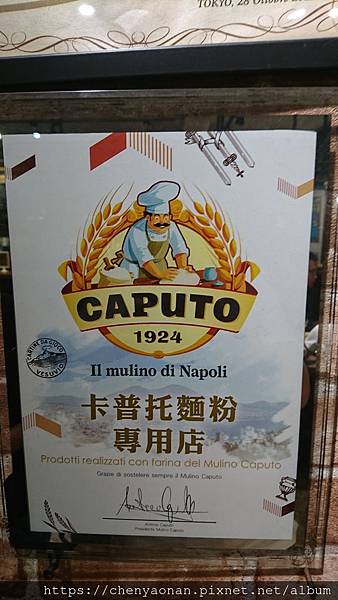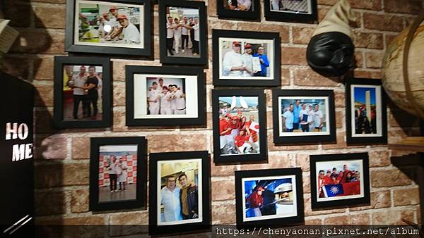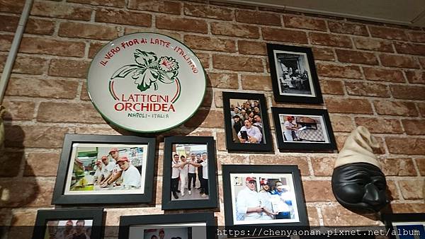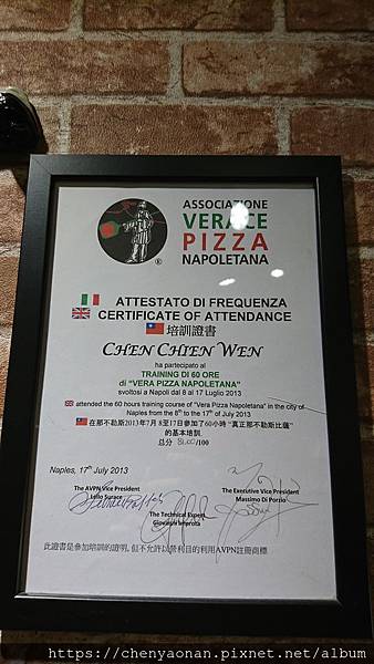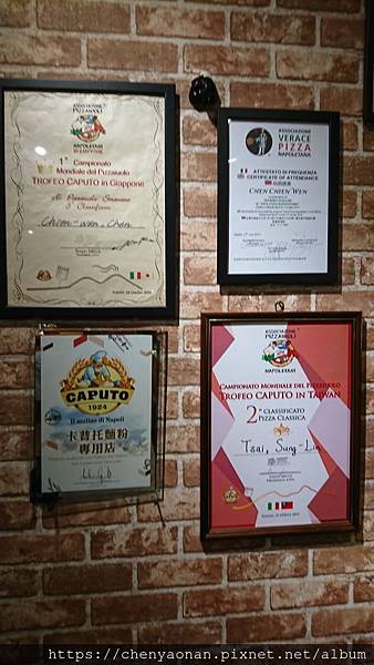 店裡的照片牆,廚師到義大利學習製作PIZZA照片。