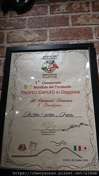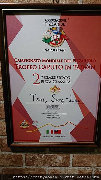 第18屆拿坡里CAPUTO盃世界披薩職人錦標賽獎牌及培訓證書。
