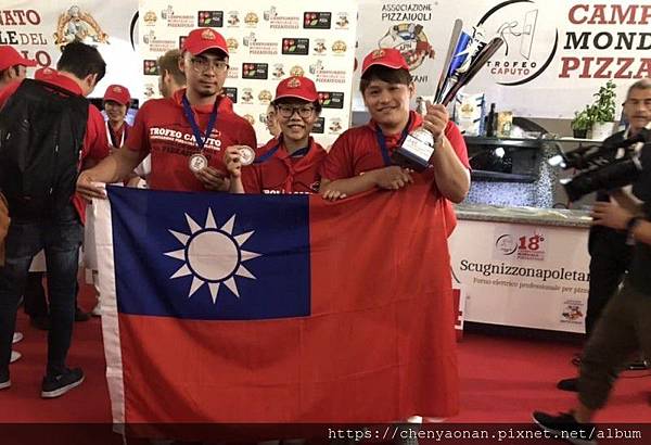 這次比賽台灣選手由高雄「波市多 Pizza」蔡松霖(左)、台北「BANCO Pizza」李品儀(中)、新北「Gino Pizza」鄭羽辰(右)等3人組成。