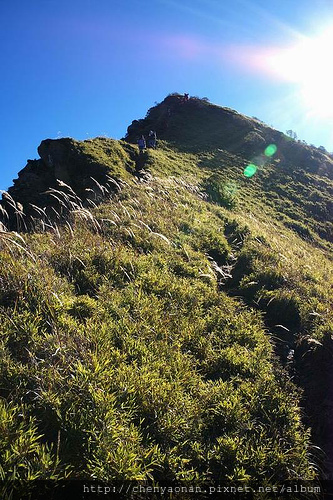其實,剛上山沒幾分鐘我就爬得氣喘呼呼,開始發覺似乎也些不對勁,不過那時心想:『自己都登過「玉山」了,合歡山算什麼!』可能是自己太久沒爬山了,會喘是正常的。我邊爬邊拍照,一邊欣賞合歡山上晴空萬里的山景。