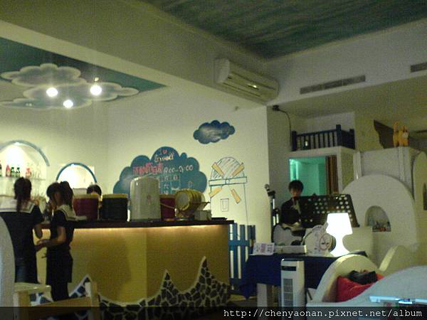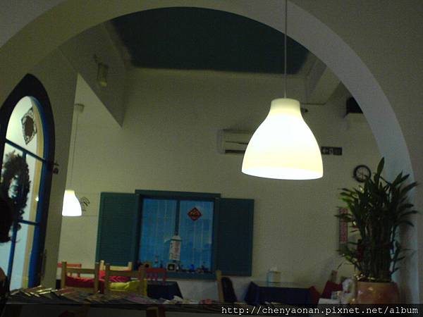 這間餐廳在我唸高雄科大時就見它開了,經過這家店時一直被它外觀地中海藍白色的建築物所吸引,時常看見餐廳內客滿。今年8月31日才進去吃。踏進餐廳的第一眼,就對於內部地中海般的擺設與色調充滿驚奇:(沒想到楠梓這種地方也有裝潢用心的餐廳)。
