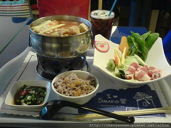 當天點的餐點:蕃茄養生火鍋,去這間店在菜單上可以點「店家推薦餐點」(菜單上會有註記),都還蠻好吃的。
