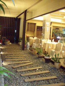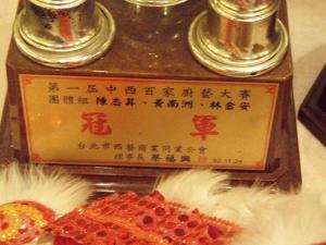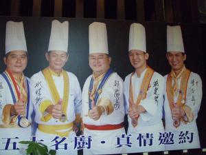 尾牙辦在這間餐廳,上次主任跟黑道老大去這間餐廳吃中餐,回來就一直推薦說有多好吃。餐廳最大的招牌就是這名廚五虎將的T-Bar照片。所謂百聽如一試,好期待今天的尾牙。(蠻多冠軍獎盃排在大門口炫耀廚師的戰績)