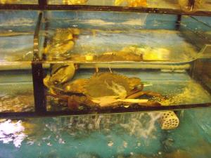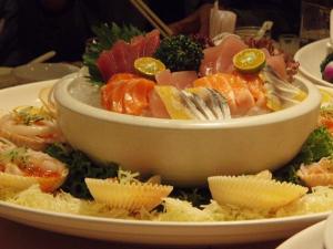 趁還沒上菜時,到餐廳四週逛逛。走道沙西米的巴台看到好多生猛海鮮。龍蝦+螃蟹待會應該會吃得到這些料理吧。越來越多期待了。