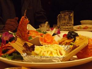 龍蝦拼盤:由龍蝦身體各部位的肉做成的冷盤。