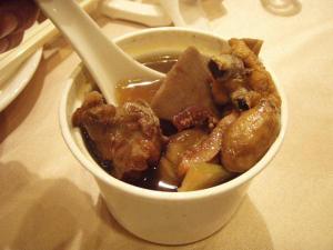 佛跳牆:印象中裡面的料有:排骨、芋頭、栗子、魷魚......。因為太好吃了,等我吃完時已經來不及記得吃了什麼了。