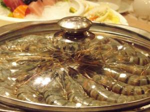 清蒸沙蝦 :蝦子底部用岩鹽加上些許水清蒸,水蒸乾後蝦子就熟了。蝦子肉好脆好新鮮,也是好吃。