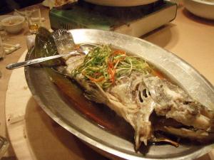 高級魚種(紅嘉臘魚): 這隻魚上桌不到10分鐘就被吃到見骨了,每個人都說這魚好吃。