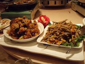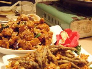 糖醋排骨+小魚乾:是兩道很讚的下酒菜。
