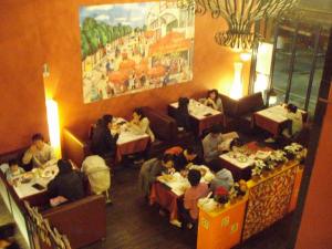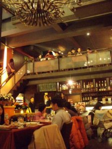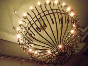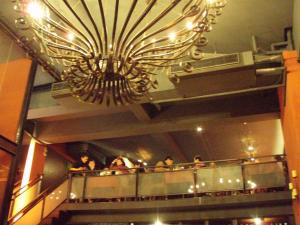 餐廳內是樓中樓的設計,一樓有盞大型吊燈。
