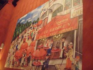 一樓牆壁的壁畫很像在畫這間餐廳:在河岸邊,三角窗,店內可看見街道外人群的互動。