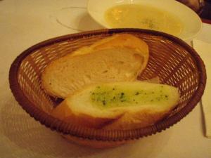 餐前:玉米濃湯,有香腸片+玉米+馬鈴薯,可搭配蒜味麵包沾著吃。