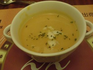 湯:<南瓜濃湯>喝起來口感甜甜的,南瓜新鮮味道香濃。