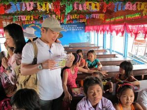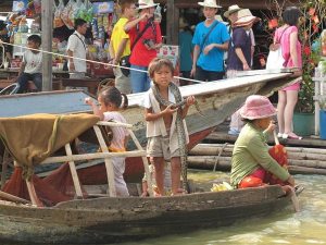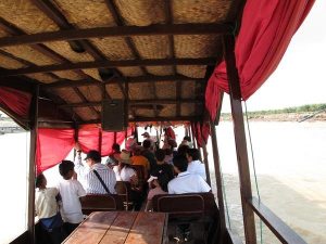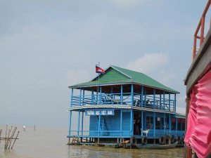 【洞里薩湖】(洞里薩湖為東南亞最大的內陸淡水湖,此湖每年5—10月的雨季總面積可達11,132平方公里,水深14公尺,當旱季來臨時湖水又縮小為3,000平方公里,水深只有1公尺,極為懸殊。而漁獲源源不斷供應全高棉人民食用,亦可外銷)。延途您可看到當地水上人家特有生活情形如船屋上捕魚、種菜、養豬、甚至水上學校等,所有陸上設施應有盡有,別具特色,洞里薩湖碼頭與船隻是由韓國人經營。