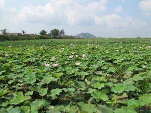 洞里薩湖邊的蓮花田。
