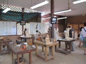 【吳哥窟藝術學校】,遊法國人出資興建,招生18~25歲當地人。到學校學藝2年,畢業後可選擇自己出外謀生,或留在學校工作(底薪US60~100元,賣出自己做的作品抽10%)。