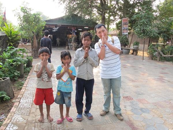 一大清早就從吳哥窟暹粒省拉車回金邊市了,途中暹粒省外不遠在探訪一家孤兒院,並將剩餘兩大箱文具捐給此孤兒院。