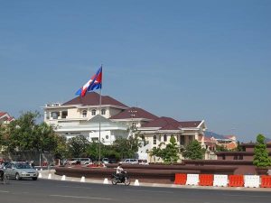 遊覽車經過順道拍下「金邊總統府」。