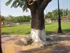 路樹常見到漆上防止白蟻的白漆藥劑。