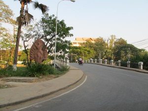 金邊獨立紀念碑 紀念西元1953年脫離法屬殖民地成立王國而建立,該塔象徵高棉爭取獨立的艱辛過程,建築極具柬族文化及歷史,每年11月9日獨立日當天紀念碑下擺滿花圈,中央的火盆燃起烈火紀念此一特殊紀念日。隔壁是柬埔寨總理韓森的家。