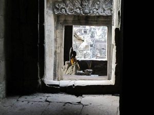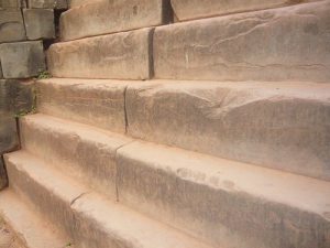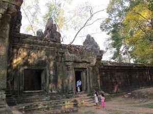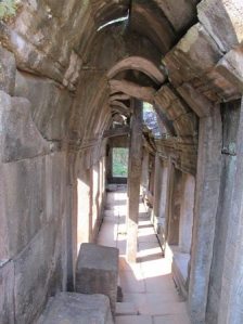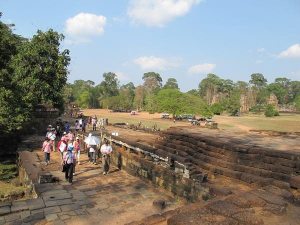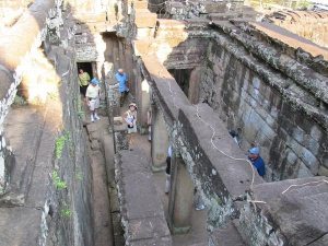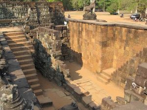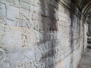 下層宮殿遺址,迴廊有156m的石雕故事牆,講述高棉對抗占婆的戰爭。