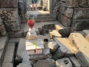【國王閱兵台、12生肖塔(審判塔Prasats Suor Prat)】12生肖塔分布為北六座.南六座.中間為界的是通往勝利門的道路.在12世紀.周達觀他寫到-那是用於公判是非的地方.等於現在的法庭.也有傳說是古時走鋼索賣藝表演的地方。傳說古代每個塔下方都放著一個大水缸,水缸裡養著一條毒蛇,若法官無法裁定兩位辯稱無罪的嫌疑犯,會將兩人分別帶入其中兩座塔中,將嫌疑犯手放入水缸,若沒被毒蛇咬就判無罪。(有此一說:作賊心虛,有做壞事的人手會產生顫抖,引發毒蛇攻擊)。