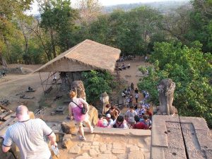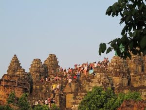 【巴肯山Phnom Bakheng】傍晚來到海拔67公尺的王城聖地觀賞落日美景。上山一般遊客由右方上山約走2公里20分鐘路程。或由左方路線搭乘大象上山(上山US25元/人;下山US15元/人),,中間原本可以由此直接爬上去,但由於太陡峭現在封閉。