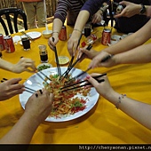 外觀類似乾拌冷盤,大家一起拿筷子把盤子的食材,加高拌合同時嘴裡要說著吉祥話。