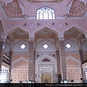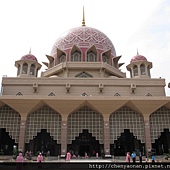 粉紅清真寺2/3蓋在湖上,整棟以玫瑰大理石施工,也是馬來西亞少數供對外參觀的清真寺,但規定入內參觀的女性, 必需穿上清真寺里所提供的「粉紅衣」與帽子才能入內參觀。