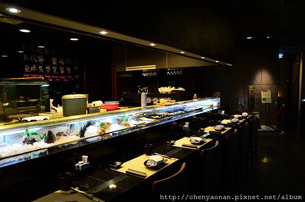 餐廳日式壽司料理吧台,同事跟同性朋友可以在此並肩用餐。