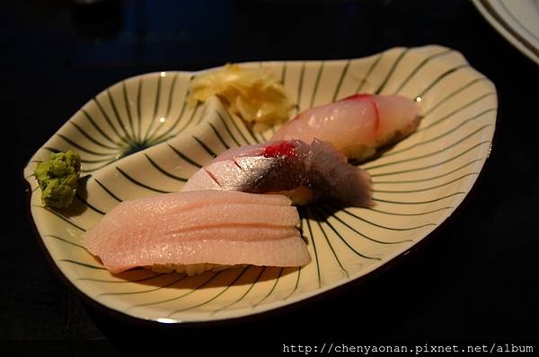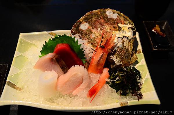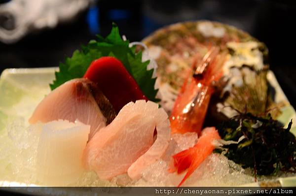 2刺身:鮪魚+旗魚+紅甘+蝦。