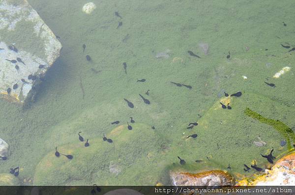 水池內有一堆蝌蚪+魚。